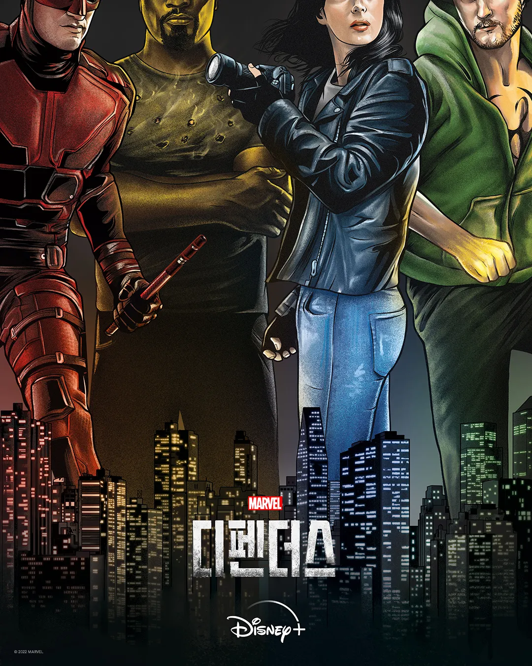 그동안 우리가 봐왔던 네 명의 히어로들은 철저히 고립되어 있었습니다. 맷 머독은 정체성에 괴로워하며 마스크를 벗으려 했고, 제시카 존스는 술에 의지해 트라우마를 피했으며, 루크 케이지는 할렘의 짐을 혼자 짊어졌고, 대니 랜드는 잃어버린 자신의 뿌리를 찾느라 여념이 없었죠. 하지만 뉴욕의 거대 악 '핸드(The Hand)'가 도시 전체를 무너뜨리려는 음모를 드러내자, 이 평행선 같던 네 사람의 궤적이 마침내 '미들랜드 서클'이라는 한 지점에서 충돌합니다. 각자 다른 목적으로 핸드의 본거지에 침투했던 그들이 엘리베이터 앞에서 처음으로 서로를 마주하고, 쏟아지는 적들을 향해 함께 등을 맞댈 때의 그 전율은 이 시리즈의 백미라 할 수 있습니다.